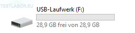 Aufgrund seiner schmalen Form und kleinen Größe passt der USB-Stick auch in etwas engere, aufeinanderliegende Slots oder auch am engeren Bereich hinter dem Fernseher. Im Test gibt es daher bei keinen Steckplätzen ein Platzproblem. Unser Test-Stick hat die Speichervariante mit 32GB. Laut dem Programm H2testw beträgt der freie Gesamtspeicher 29683 Mbyte. Nutzbar sind im Auslieferungszustand an unserem Windows PC 28,9 GB. Das sind 3,1 GB weniger als vom Hersteller angegeben. Das Abweichen des angegebenen Speichers vom tatsächlichen Speicher ist unter Windows allerdings üblich.