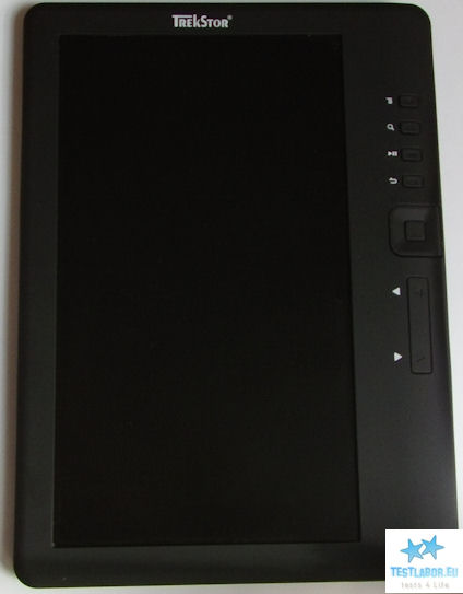 Der eBook Reader 3.0 von Weltbild liegt angenehm leicht- aber nicht zu leicht- in der Hand. Das Gehäuse besteht komplett aus gummiertem Plastik, was dem Gerät einen guten Halt verleiht. Achtung: Fettfinger hinterlassen auf der Oberfläche unschöne Spuren. Als Anschlussmöglichkeiten gibt es jeweils 1x microSD (bis zu 32 GB erweiterbar) micro-USB und den Kopfhöreranschluss. Die Bedienelemente sind auf der rechten Seiten untereinander aufgereiht. Wir sehen oben die Menü-, Lupe, Wiedergabe und Zurücktaste. Darunter ist das Bedienkreuz, inklusive OK Taste. Und ganz unten befinden sich die Vor- und Zurück-tasten zum umblättern der Seiten. Insgesamt mach der von TrekStor hergestellte eBook Reader 3.0 einen robusten und wertigen Eindruck.