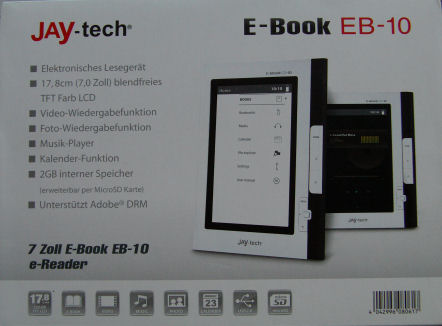 E-Book Reader liegen dieses Jahr unter so manchem Weihnachtsbaum und immer mehr Hersteller streiten sich um das beste und vor allem günstigste Produkt. Auch Jay-Tech hat sich dieser Materie anvertraut und bringt mit dem E-Book Reader EB-10 ein E-Book auf den Markt, dass einen 17,8cm (7“) großen Display aufweist. Zudem bietet es einen Video- und Musik-Player, sowie eine Kalender-Funktion. Oben drauf gibt es 2GB internen Speicher, welcher via microSD erweiterbar ist. Der EB-10 ist schon für knapp 120 EUR zu erhalten. Ob sich der günstige Preis negativ auf die Komponenten und Funktionen auswirkt verrät der folgende Testbericht: