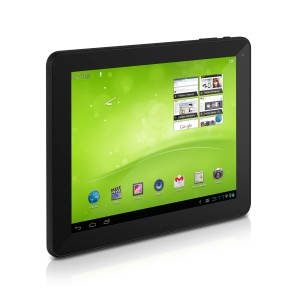 Das SurfTab ventos 9.7 bringt als Zubehör ein USB 2.0-Kabel (Micro-USB), ein USB-Host-Adapterkabel (Micro-USB (USB-A), ein Reinigungstuch, das Netzteil (100 V - 240 V) und die Kurzanleitung mit ins Haus. Die Kabel sind alle samt recht kurz geraten. Hier hätte der Hersteller ruhig etwas mehr „Leine geben“ können. Bereits an der Verpackung merken wir: Der Tablet-PC ist groß! Die Maße belaufen sich auf 243 mm x 190 mm x 11.5 mm (B x H x T). Unglaubliche 9.7“ (24,8cm) misst das Display des ventos. Und dies bei einem Gewicht von nur 620 g. Die Auflösung besträgt1024 x 768 Pixel.