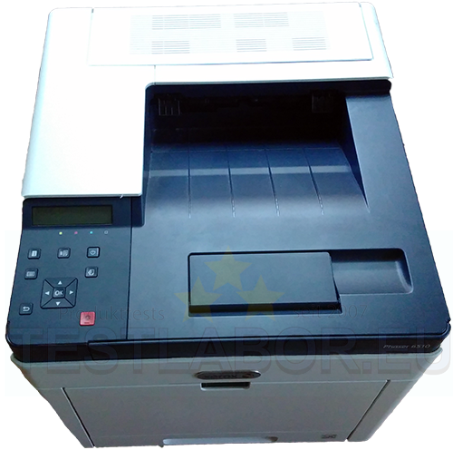 Ob Gehäuse, Display oder Bedienelemente, der Drucker hinterlässt im Test auf Anhieb einen positiven Gesamteindruck. Der Drucker startet sehr schnell und lässt sich ebenso schnell wieder ausschalten. Für die Papierzufuhr steht bei diesem Farblaserdrucker ein 250 Blatt fassender Papierschacht zur Verfügung. Zusätzlich gibt es noch ein manuelles Fach 50 Blatt. Die Ausgabe fasst maximal 150 Blatt. Anwender, die mehr Papierkapazität benötigen, können eine Kassette mit 500 Blatt Kapazität zusätzlich kaufen und anbringen. Folgende Papierformate werden bedruckt: A4, A5, B5, B6, C5. Der Xerox-Phaser 6510 druckt 28 Seiten pro Minute und ist somit besonders schnell, wie auch die Tests bestätigen. Ob schwarzweiß oder bunt, die Ausdrucke sind einwandfrei. Dank der geringen Tonerpartikelgröße werden feine Details in einer sehr guten Auflösung wiedergegeben. Mit der nativen Auflösung von 1200 x 2400 dpi erstellen wir im Test Bilddrucke und Dokumente, die im Team Eindruck schinden. Sehr schön ist auch der beidseitige Druck.