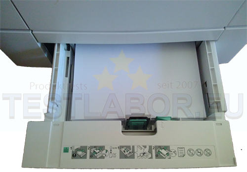 Ob Gehäuse, Display oder Bedienelemente, beide Xerox Drucker hinterlassen im Test auf Anhieb einen positiven Gesamteindruck. Die Geräte starten schnell und lassen sich ebenso schnell wieder ausschalten. Das Fassungsvermögen der Xerox-Drucker verteilt sich auf insgesamt zwei (optional drei) Fächer mit einmal 150 und 550 Blatt. Somit gibt es bei den Beiden in der Grundausstattung Platz bis zu 700 Blätter. Anwender, die noch mehr Papierkapazität benötigen, können eine Kassette mit weiteren 550 Blatt Kapazität zusätzlich kaufen und anbringen. Dieses Papierfach kostet allerdings aktuell stolze 200 EUR. Das monatliche, technische Druckvolumen liegt bei beiden Produkten bei max. 80.000 Seiten. Auch in Sachen Druckgeschwindigkeiten liegen die Drucker aus dem Hause Xerox überein: Bis zu 35 Seiten in Farbe oder Schwarzweißdrucke erledigen die Geräte pro Minute.