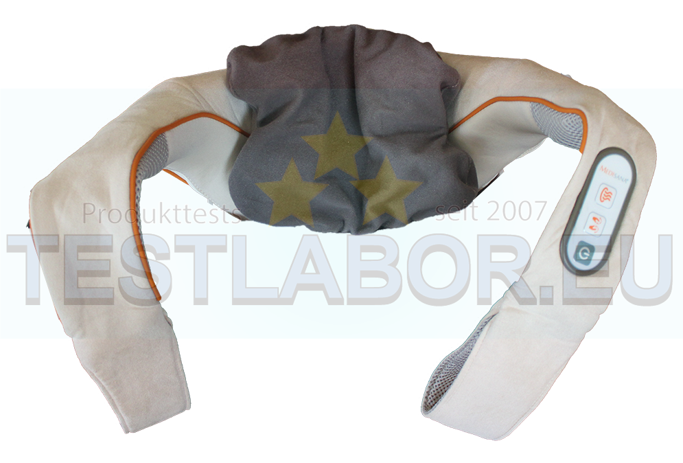 Wir testen und bewerten das Produkt anhand folgender Kriterien: Funktionen, Handhabung und Materialeigenschaften. Das Shiatsu-Nacken-Massagegerät ähnelt optisch einer Halskrause und besteht aus einem festen Schaumstoff. An den jeweiligen Seitenenden sind Halteschlaufen angebracht, sowie auf der linken Seite ein integriertes Bedienfeld. Mittig gibt es einen abnehmbaren, waschbaren Bezug, worunter sich die vier rotierenden Massageköpfe inkl. zuschaltbarer Wärmefunktion befinden. Die Verarbeitung des Produkts betrachten wir insgesamt als gut. Laut Hersteller ist das Shiatsu-Massagegerät NM 860 in erster Linie für die Shiatsu- Massage im Nacken- und Schulterbereich bestimmt. Aber es soll auch einen flexiblen Einsatz an weiteren Körperstellen wie zum Beispiel an Bauch, Rücken, Ober- und Unterschenkeln erlauben.