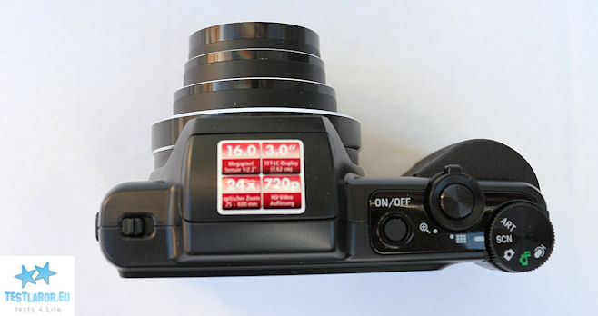 Das Objektiv besteht aus einem optischen Aufbau in 10 Gruppen und 11 Elementen. Die Daten: Blende: F = 1:3,0 (W) – 6,9 (T) | f = 4,5~108 mm. Es ist mit einem guten Brennweitenbereich von bis zu 600 Millimeter ausgerüstet. Dies entspricht 25~600 mm im Kleinbildformat. Umgerechnet in dieses Format ist die Linsenkonstruktion in der Lage Weitwinkelaufnahmen mit 25 Millimetern zu machen. Daraus entsteht ein 24-facher Zoom. Der Sensor erfasst Bilder mit einer Auflösung von 16 Megapixeln. Gute Werte für eine Digitalkamera in dieser Preisklasse!