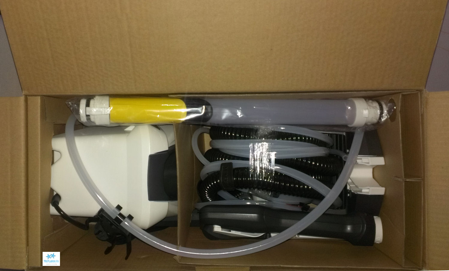 Beim Befüllen muss der Testproband den Drehknopf auf „Clean“ stellen um einen vollen Mengendurchsatz zu erhalten. Die Farbförderpumpe ist nun an und die Turbine läuft noch nicht. Jetzt kann der Tester mittels gedrückten Griffs die Farbe aus dem Eimer pumpen. Am transparenten Schlauch kann er nun sehr gut verfolgen, wie die Farbe vorankommt. Der Proband muss solange gedrückt halten, bis die Farbe austritt. Jetzt Muss er nur noch den Griff loslassen und das Gerät ist start- bzw. sprühbereit. Der Zusammenbau ist in ca. 10 Minuten zu schaffen.