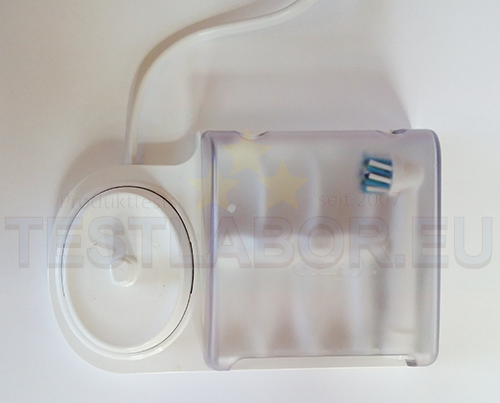 Vom optischen her kann die SmartSeries 7000 im Test auf Anhieb überzeugen. Die äußeren Materialien wirken wertig und sind gut verarbeitet. Das Handstück liegt aufgrund der Form und gummierten Stellen gut in der Hand, und die Aufsteckbürsten lassen sich einfach anbringen und entfernen. Zum Verstauen eignet sich die praktische Klapp box an der Ladestation gut. Allerdings sammelt sich hier nach kurzer Zeit Flüssigkeit an, was zu einer Vermehrung von Bakterien führen kann. Das Gleiche gilt für die Ladestation an sich und den Boden des Handstücks. Wir empfehlen daher diese Bereiche täglich zu säubern. Andernfalls können sich vor allem auf der Ladestation auf Dauer Schmutz, unangenehme Gerüche und Schimmel bilden. Schmutz lagert sich auch an der unteren Kante bzw. Spalte des Handstücks sowie an anderen Stellen, wo sich Spalten befinden, ab. Das komplette Set ist somit sehr reinigungsbedürftig.