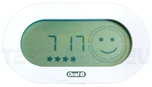 Das Zähneputzen an sich verläuft mit der Smart Series 7000 im Test dafür auf Anhieb einfach und schnell. Die Lautstärke ist mit rund 60 dB zwar erträglich aber aufgrund des eintönigen, summenden Tones auf Dauer etwas störend. Zudem sind die Vibrationen am Handstück deutlich zu spüren, was auf Dauer im Test ein leichtes Kribbeln in der Hand verursacht. Die Intervalle werden mit einem veränderten Rhythmus sowie mit Signaltönen untermalt. Zudem zeigt uns der kabellose SmartGuide Timer die aktuelle Putzzeit sowie die Region an, an welcher gerade geputzt werden soll. Geputzt wird von Quadrant zu Quadrant im 30 Sekunden Takt. Zwischendrin erscheint ein Piepton, und auf dem Display wird angezeigt, welcher Kieferquadrant gerade dran ist. Zudem sehen wir Sterne, die nach jeder Stufe schwarz werden. Nach zwei Minuten ist der Putzvorgang eigentlich beendet, jedoch muss die Zahnbürste dann manuell ausgeschaltet werden. Wer möchte kann auch länger putzen. Der Timer zählt im Dauertest bis maximal sechs Minuten mit. Eine längere Putzdauer als drei Minuten pro Sitzung ist jedoch generell nicht zu empfehlen.