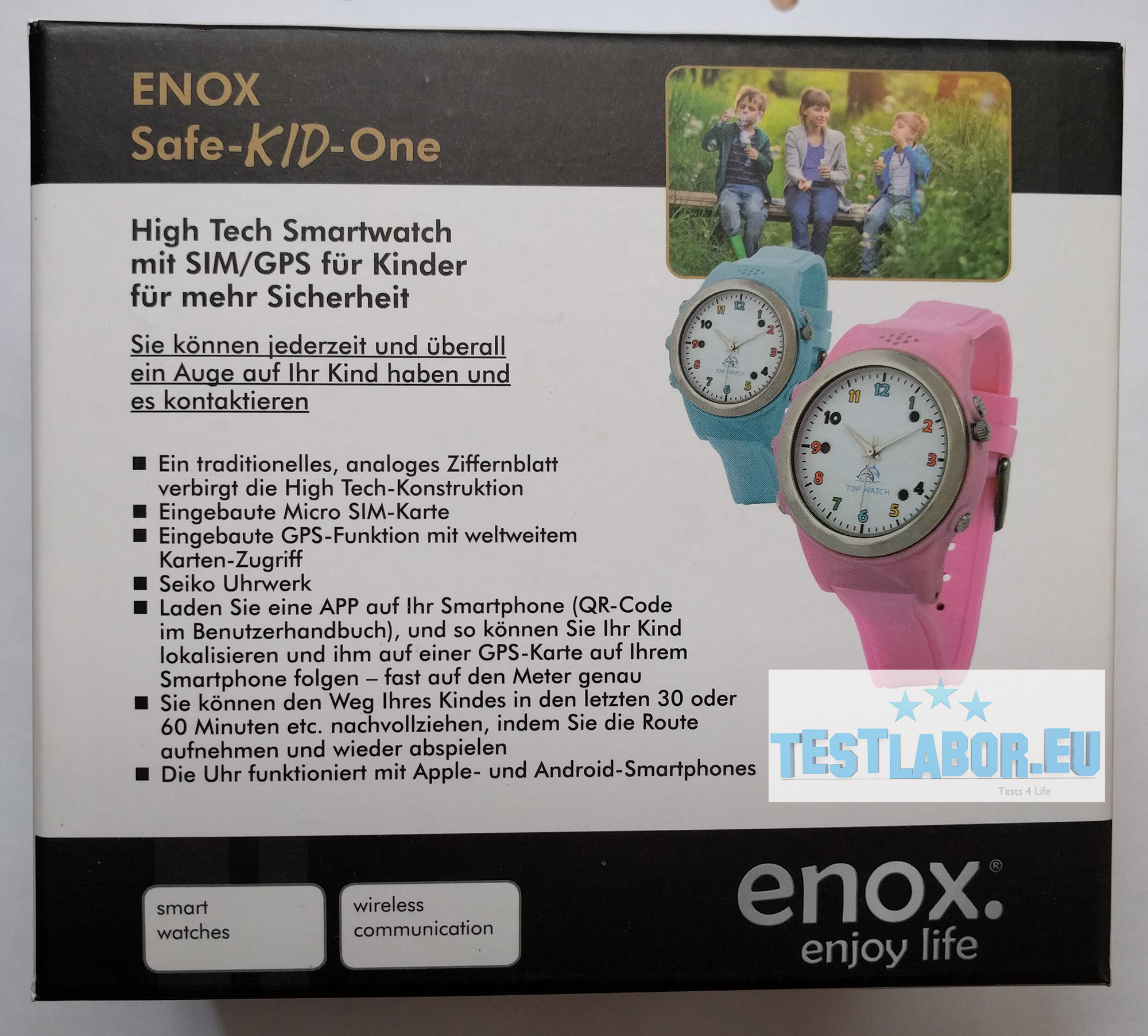 Smartwatch Test 06/2016:  Enox Safe-Kid-One Kinder Smartwatch - Testbericht (6 DIN A4 Seiten) in PDF Form.