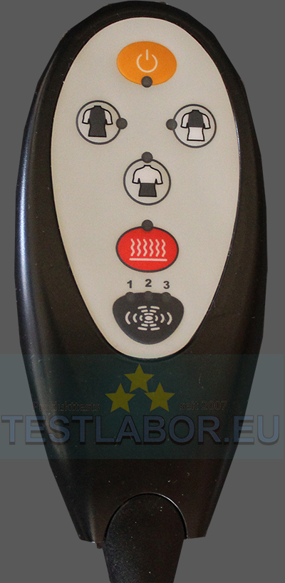 Die dreistufige, separate Vibrationsmassage in der Sitzfläche soll dem Oberschenkelbereich dienen. Im Test ist nur Stufe 1 angenehm und auch an den Oberschenkeln (vor allem rechts) spürbar. Stufe 2 und 3 stoßen jedoch vor allem bei unserem männlichen Proband auf Ablehnung, da er die Vibrationen als eher unangenehm empfindet.